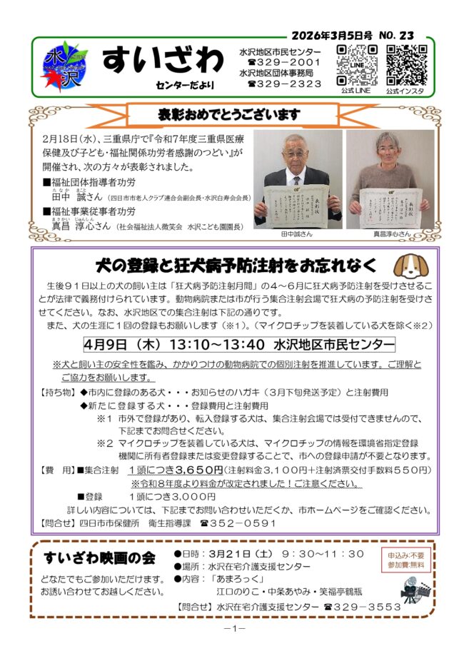 すいざわセンターだより 3月5日号